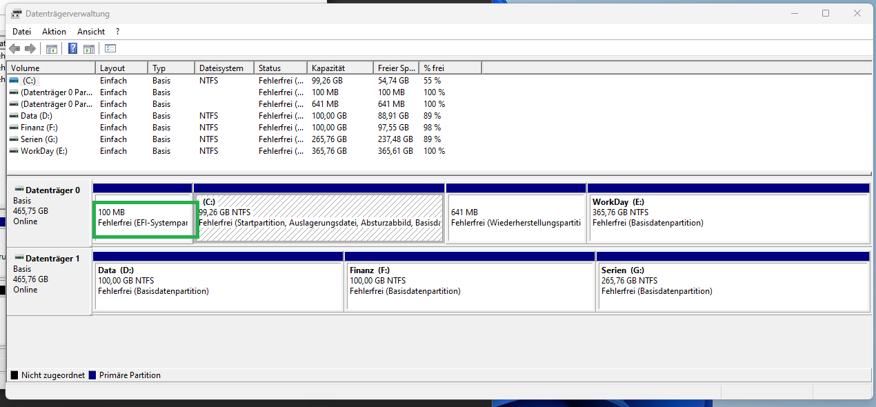 Da dein DT Screenshot nicht alles zeigt, steht da vorne Fehlerfrei (EFI-System) ?