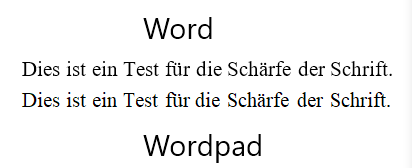 Zum Vergleich habe ich ein Bild angehängt, verglichen werden Word, Excel und Wordpad. Bitte das Bild in Originalbildgröße betrachten, sonst wird der Unterschied nicht deutlich. (Rechtsklick -> Grafik anzeigen)