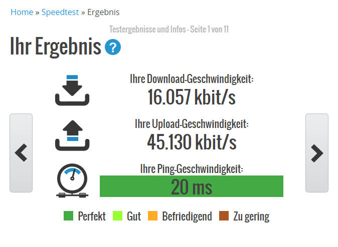 Ich erreiche immer noch nicht das was ich haben sollte, im schnitt aber muss ich sagen bis ich schon seit gestern um einiges besser dran als noch vor 2 tagen und davor ich komme nicht mehr unter die 1,6 Mbits und bin teilweise sogar auf bis zu 18 Mbits, Upload wie von anfang an TOP.