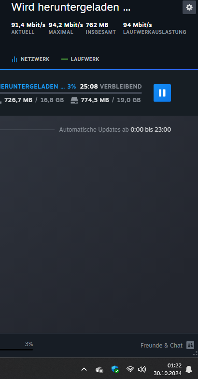 Frage: Der Download ist auch so schlecht, wenn du mit einem PC/ Laptop (kein 20 Jahre altes Gerät) direkt an deinem Router mittels Kabel angestöpselt bist?
