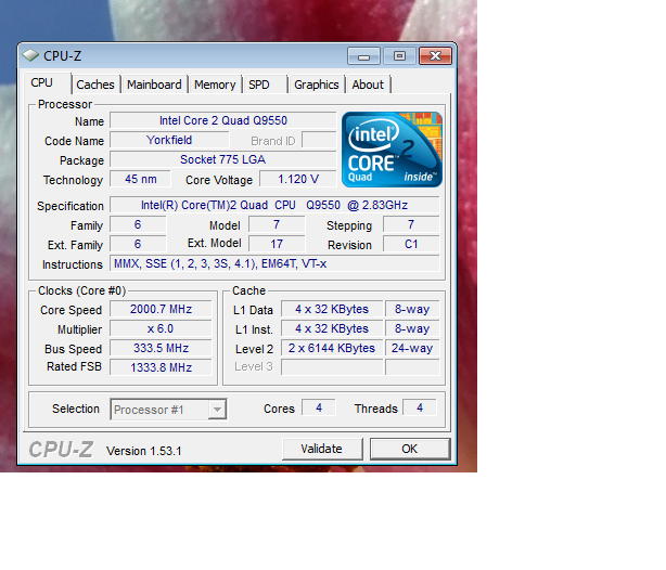 CPU #1 Intel(R) Core(TM)2 Quad CPU Q9550 @ 2.83GHz, 2833 MHz