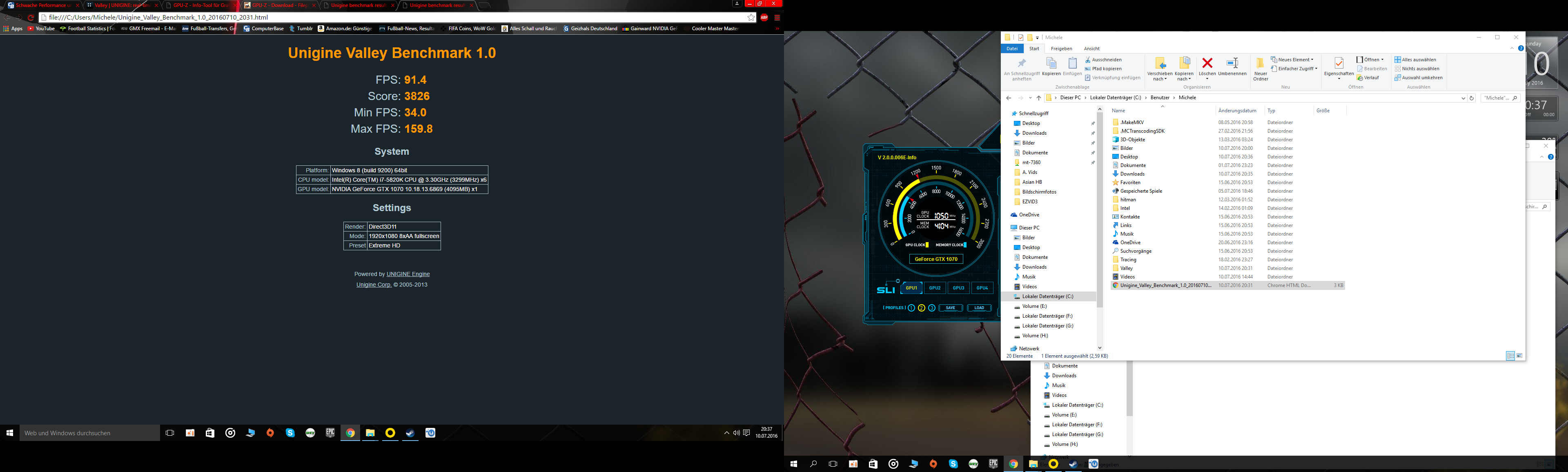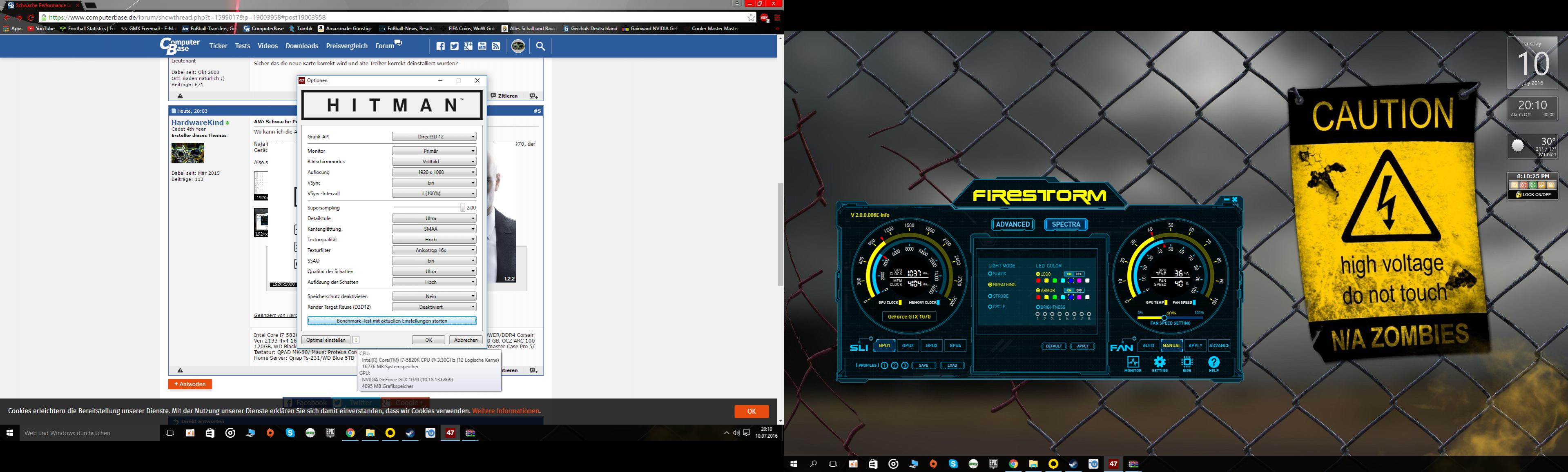 Meine 1070 AMP Extreme von Zotac kommt unter FULL HD bereits ordentlich ins Schwitzen. Unter FULL HD gibt es sogar Einbrüche von 29 FPS in Hitman bei vollen Details (selbst unter Dx 12)
