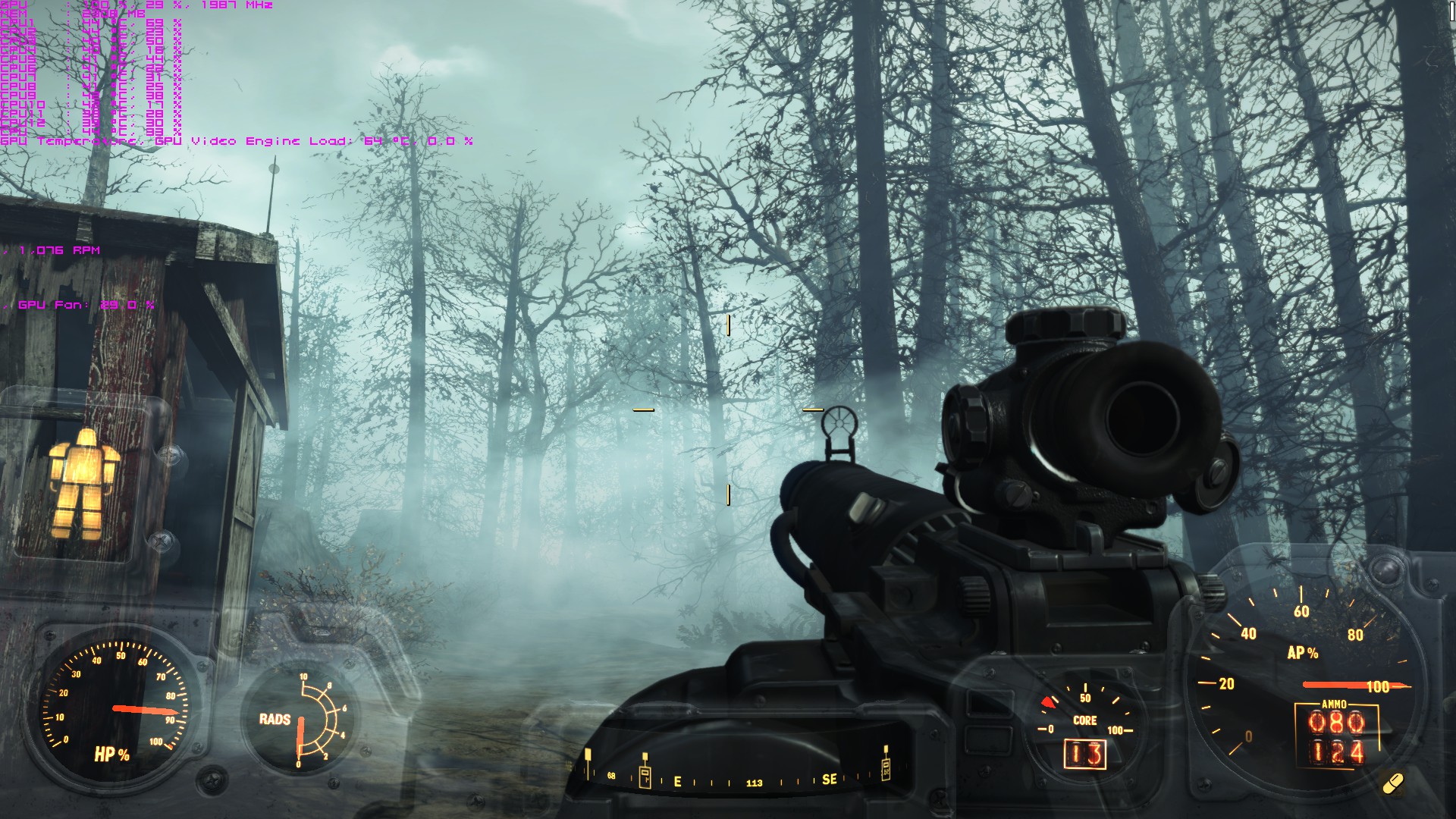 Ich hatte nebenbei Fraps laufen um die FPS anzuzeigen (in diesen Szenen zwischen 52 und 62 FPS), ich habe das via HWinfo irgendwie nicht raus finden können.