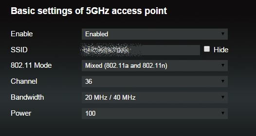 Bandwidth bei 5GHz auch mal auf automatisch.