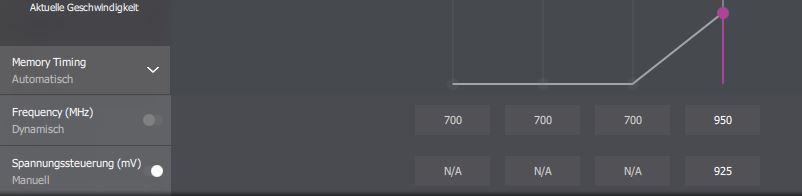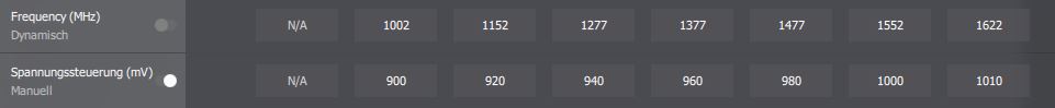 Beim Undervolting habe ich Stabil einen Takt von ca. 1450 MHz und den Speicher bei 960 MHz mit ca. 0,093 V (Max. Last laut Anzeige ca. 200W)