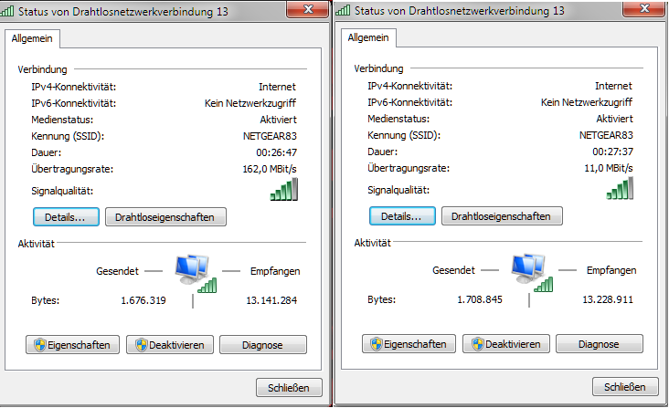 ich hab folgendes Problem..... ich hab die letzten Tage öfter mal extreme Schwankungen der Datenübertragungsrate von meinem WLan. Hab auch schon diverse Lösungen versucht... Router neu starten, andere Kanäle, Firmware Update, Treiber geprüft usw.