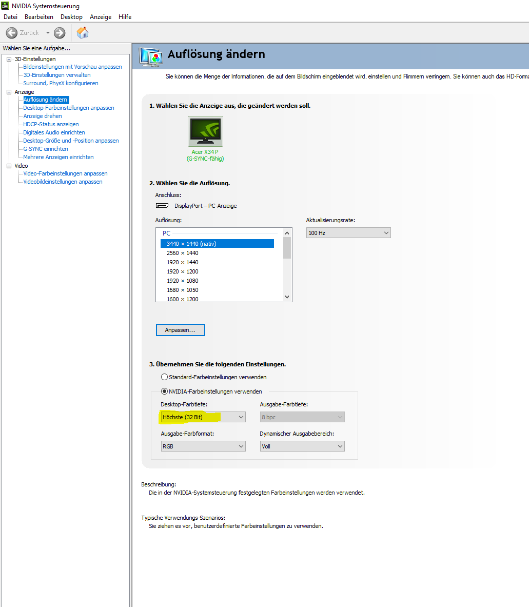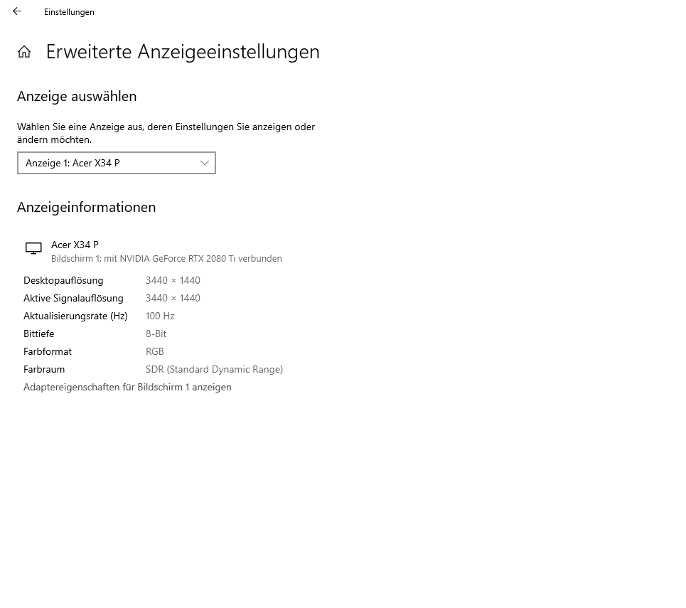 Also an der Stelle in den Erweiterten Anzeigeeinstellungen sind die 8 bit relativ normal. Das hat was mit dem Farbumfang des Bildschirms zutun. Bei mir sieht das ähnlich aus: