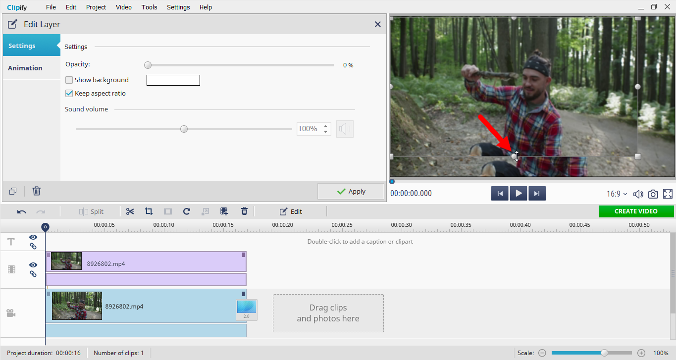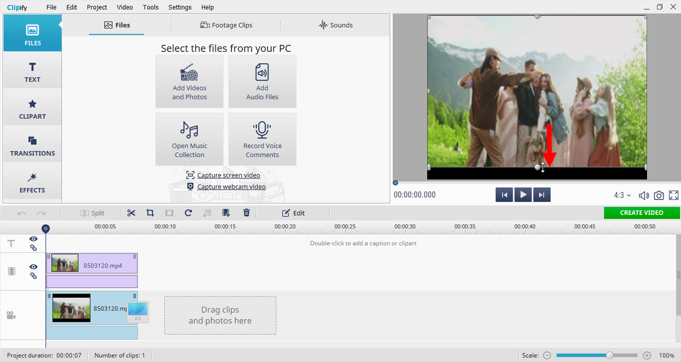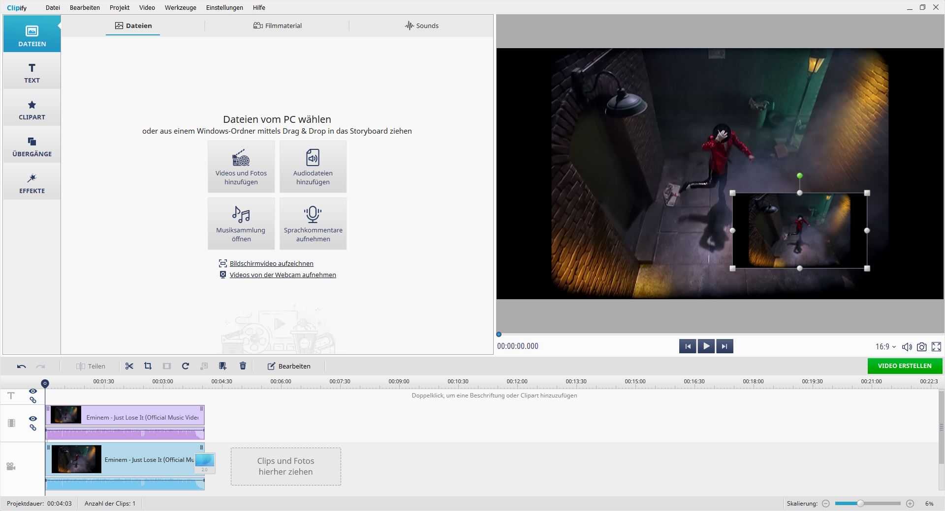 Sie können ein Video mit einer anderen Funktion strecken, die als Video-Overlay bezeichnet wird. Es ermöglicht Ihnen, das Video-Overlay zu verwenden (siehe Screenshot im Anhang). Fügen Sie dann einfach Ihr Video über einen beliebigen Hintergrund hinzu und dehnen Sie es, während Sie die STRG-Taste gedrückt halten. Sie müssen das Video dehnen, während Sie die STRG-Taste gedrückt halten. Wenn die Videoebene noch ausgewählt ist, passen Sie den Maßstab mit der Maus an (siehe Screenshot im Anhang). Das wars. Wenn Sie diese Schritte befolgen, können Sie ein Video in Clipify erfolgreich strecken und zur weiteren Verwendung exportieren. Screenshot sehe ich, dass Sie die Video-Overlay-Funktion nicht wie zuvor empfohlen verwenden. Sie müssen die Datei zuerst zur Timeline hinzufügen (siehe Screenshot im Anhang). Fügen Sie dann dieselbe Datei mit der Video-Overlay-Funktion erneut hinzu (siehe Screenshot 2). Dehnen Sie die Datei am Ende auf dem Vorschaubildschirm nach Bedarf (siehe Screenshot 3)
