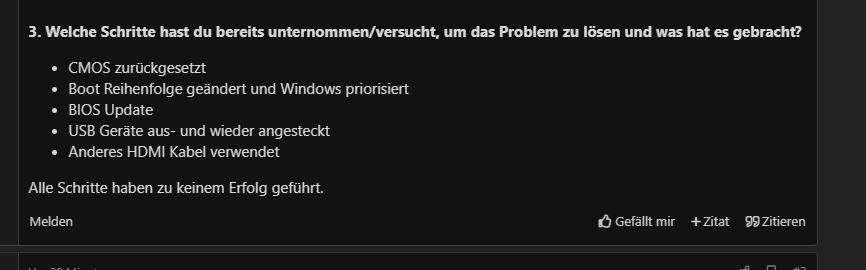 3. Welche Schritte hast du bereits unternommen/versucht, um das Problem zu lösen und was hat es gebracht?
