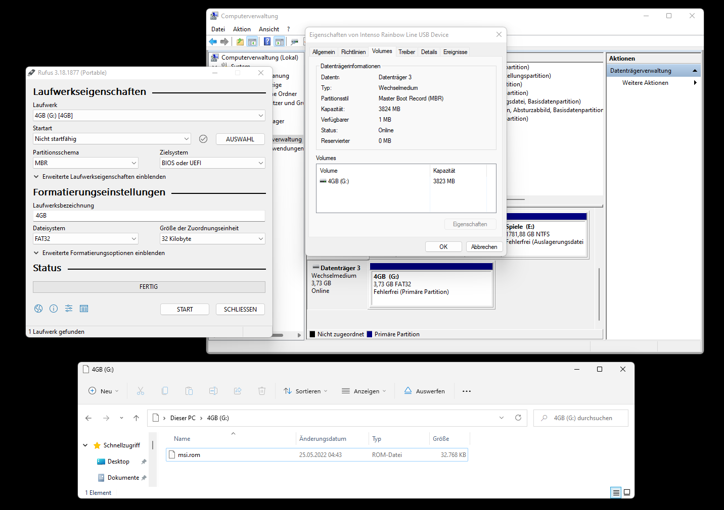-Den Ordner auf dem Boot-USB-Stick in "MSI.ROM" umbenannt