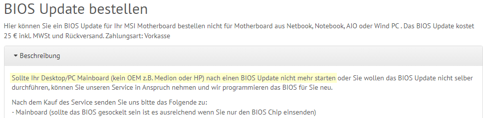 MSI bietet einen Service für kaputtgeflashte Boards an: