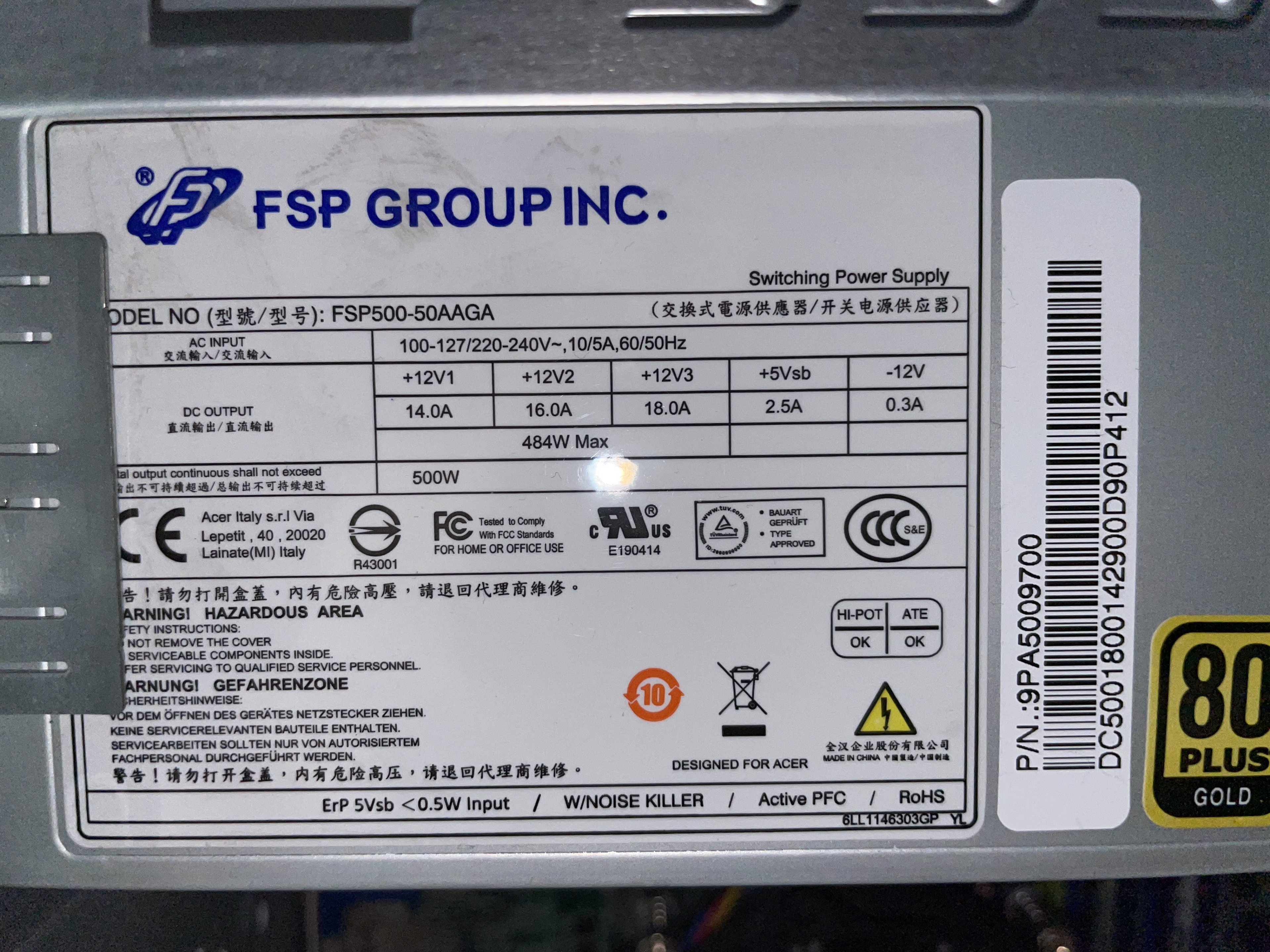 Oft habe ich auch gelesen, dass es am Netzteil liegen könnte. Ich habe eins (siehe Foto), welches 500W liefert und 80 Plus Gold zertifiziert ist. Da bei der Grafikkarte steht man solle mindestens ein 300W Netzteil haben, dachte ich es sollte passen.