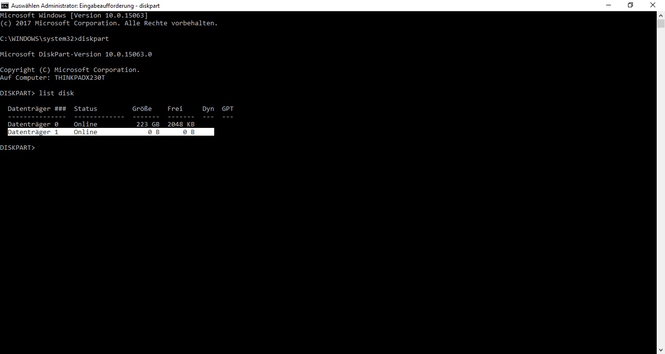 NUN aber folgendes. Ich habe es heute mal ganz oldschool mit CMD bei Windows 10 probiert. Und siehe da mit DISKPART bekam ich die Platte angezeigt, allerdings als leer, da die Partition sicher hinüber ist. Da die Windowszeit bei mir aber schon lange her ist, bin ich da schon ziemlich raus. Auch die "Help" Befehle geben nicht genügend Aufschluß wie ich weitermachen kann.