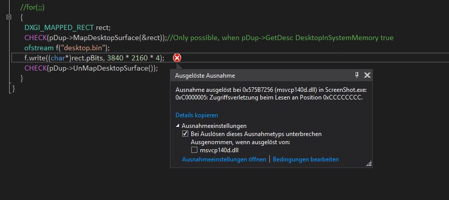 CHECK(pDup->MapDesktopSurface(&rect));//Only possible, when pDup->GetDesc DesktopInSystemMemory true