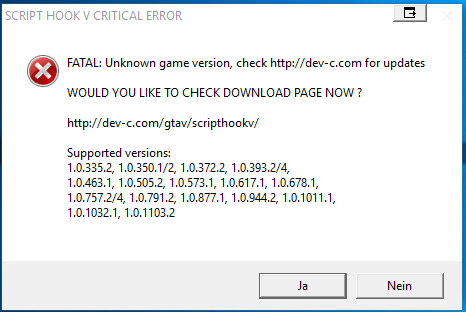 Wie schon im Titel gesagt, funktioniert mein Script Hook V nach dem neuen Update nicht mehr. Ich habe auch schon mehrmals die aktuellste Script Hook V Version heruntergeladen, doch ohne Erfolg.