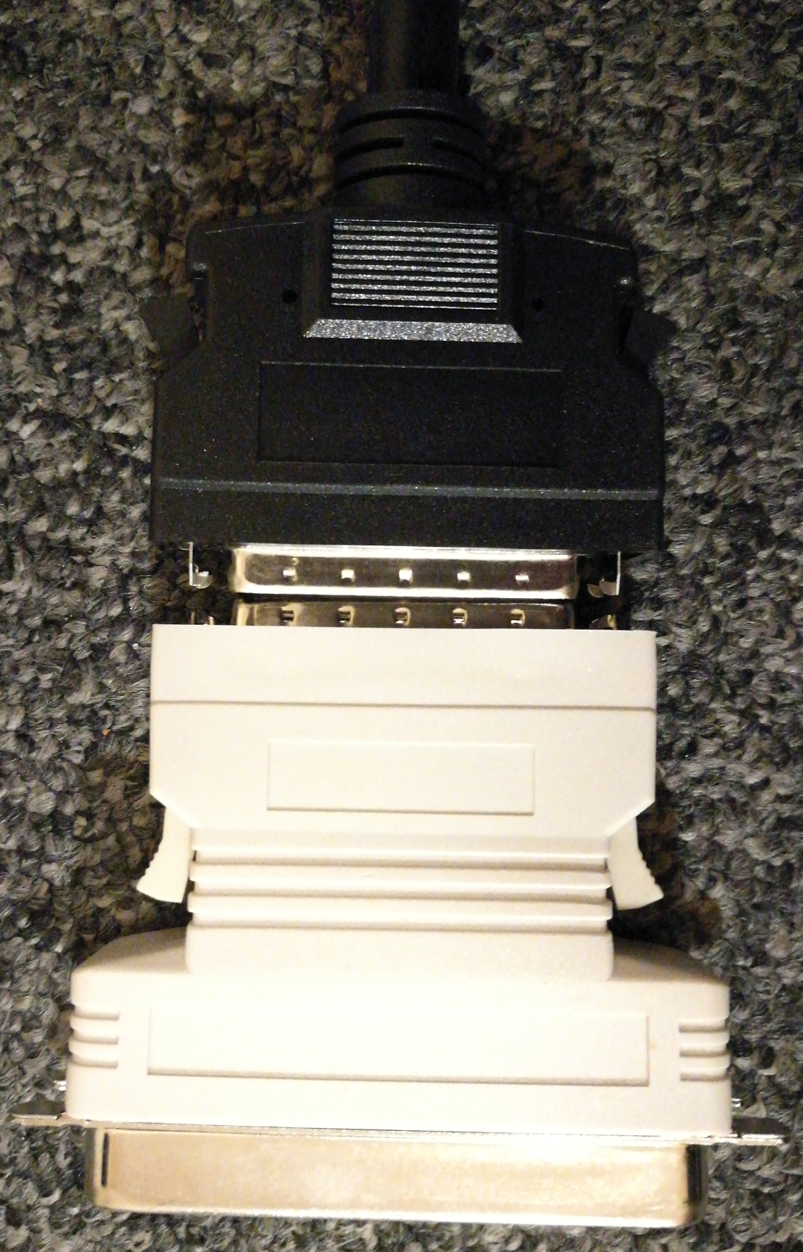 Daraufhin habe ich mir (Bild 2) ein längeres Kabel besorgt, da die Anzahl der Pins (50) gleich war - aber so einfach ist es leider nicht, die Stecker sind viel kleiner und heißen wohl "HD50 männlich".