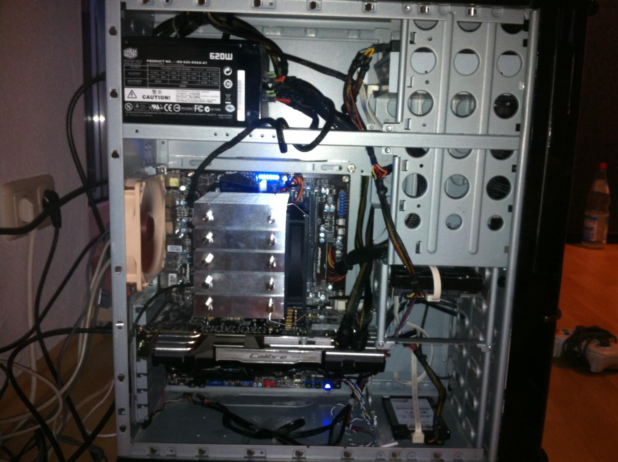 hab einen luefter an der cpu, einen hinten am gehaeuse und einen vorne am gehaeuse, netzteil ist oben verbaut.