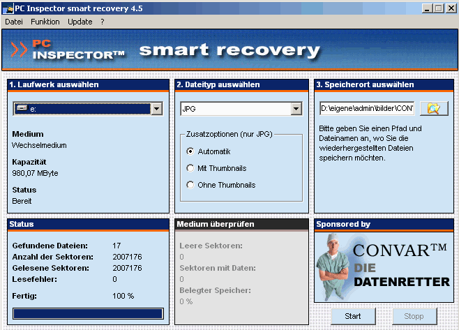 Mit Testdisk und Photorec hab ichs auch probiert. Photerec hat 17 Bilder wiederhergestellt.