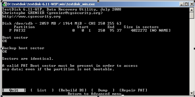 In der Datenträgerverwaltung von XP wird eine 2GB FAT32 Partition angezeigt aber in den Eigenschaften des Datenträgers nur eine Kapazität von 980MB.