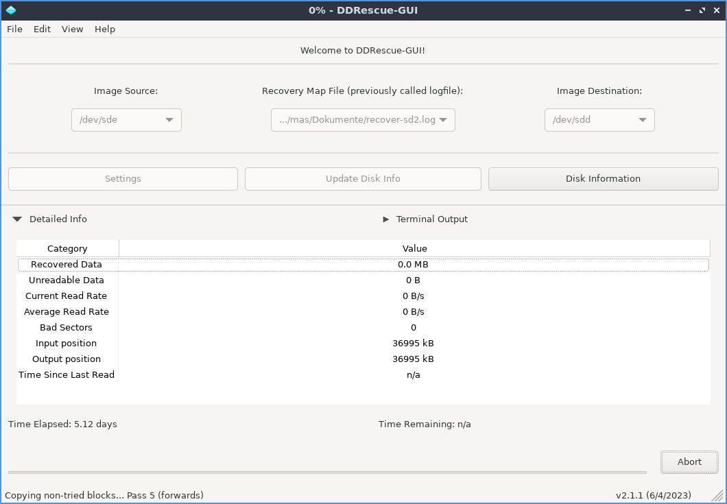 Ich habe verschiedene Tools ausprobiert (u.a. Recuva, PC Inspector File Recovery, Recoverit, RescuePRO Deluxe, DiskDigger). Bei einigen gibt es beim Scannen der Datenträger einen Timeout bzw. das Tool reagiert nicht.