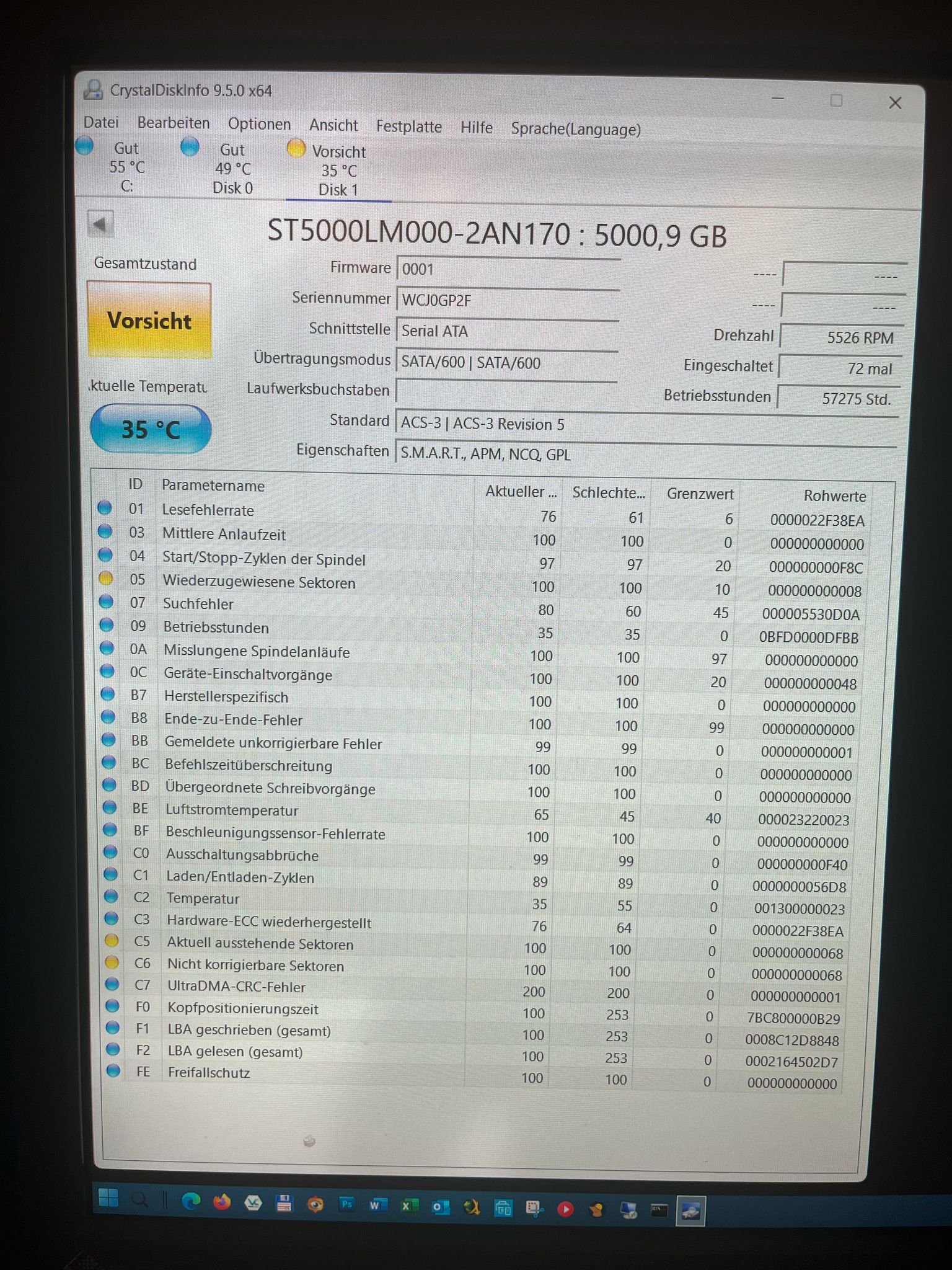 Seagate 5TB 2,5" intern, ST5000LM000: "Vorsicht" bei Auslesen der SMART-Werte