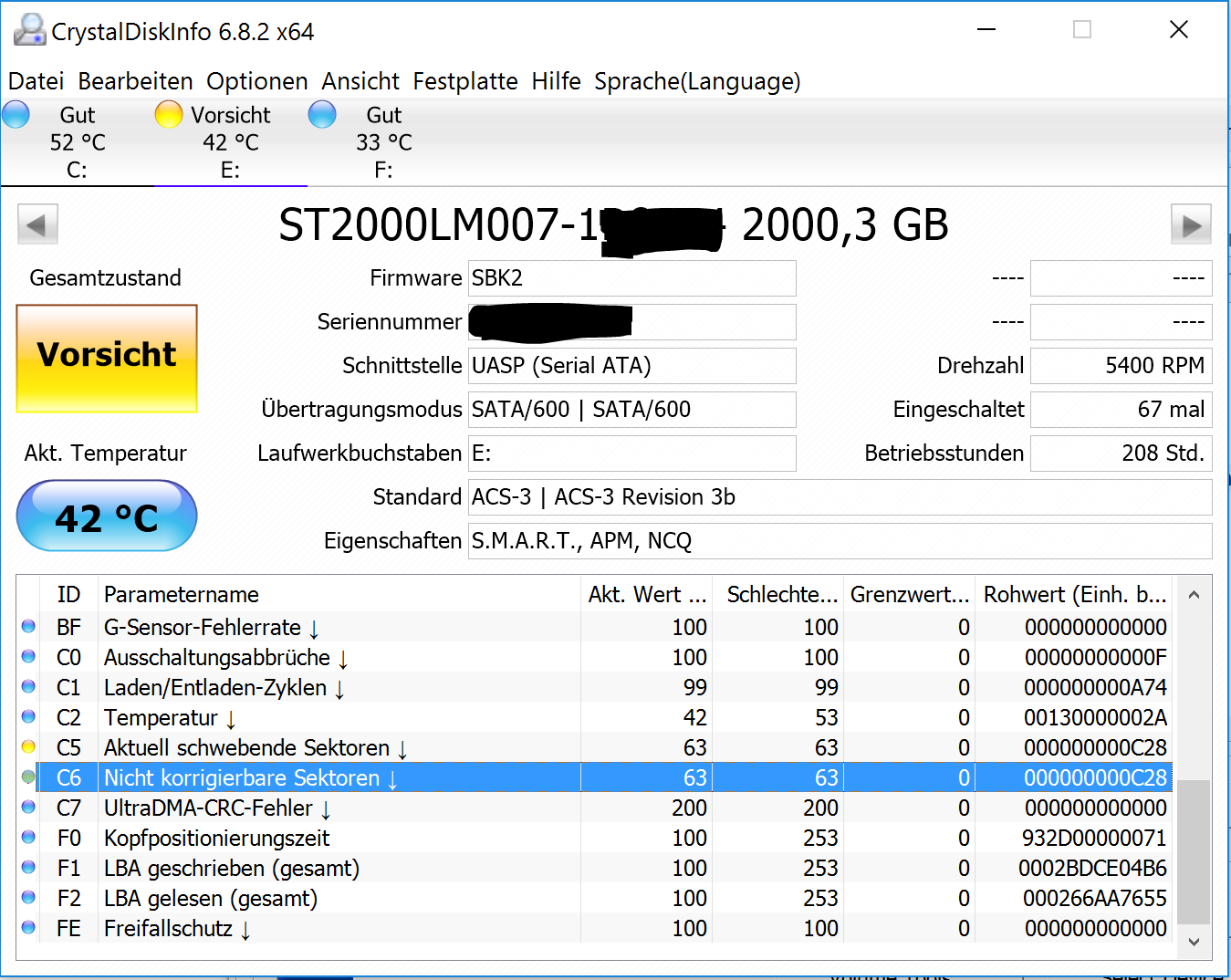 Daraufhinhin habe ich CrystalDiskInfo laufen lassen und folgende Infos erhalten.
