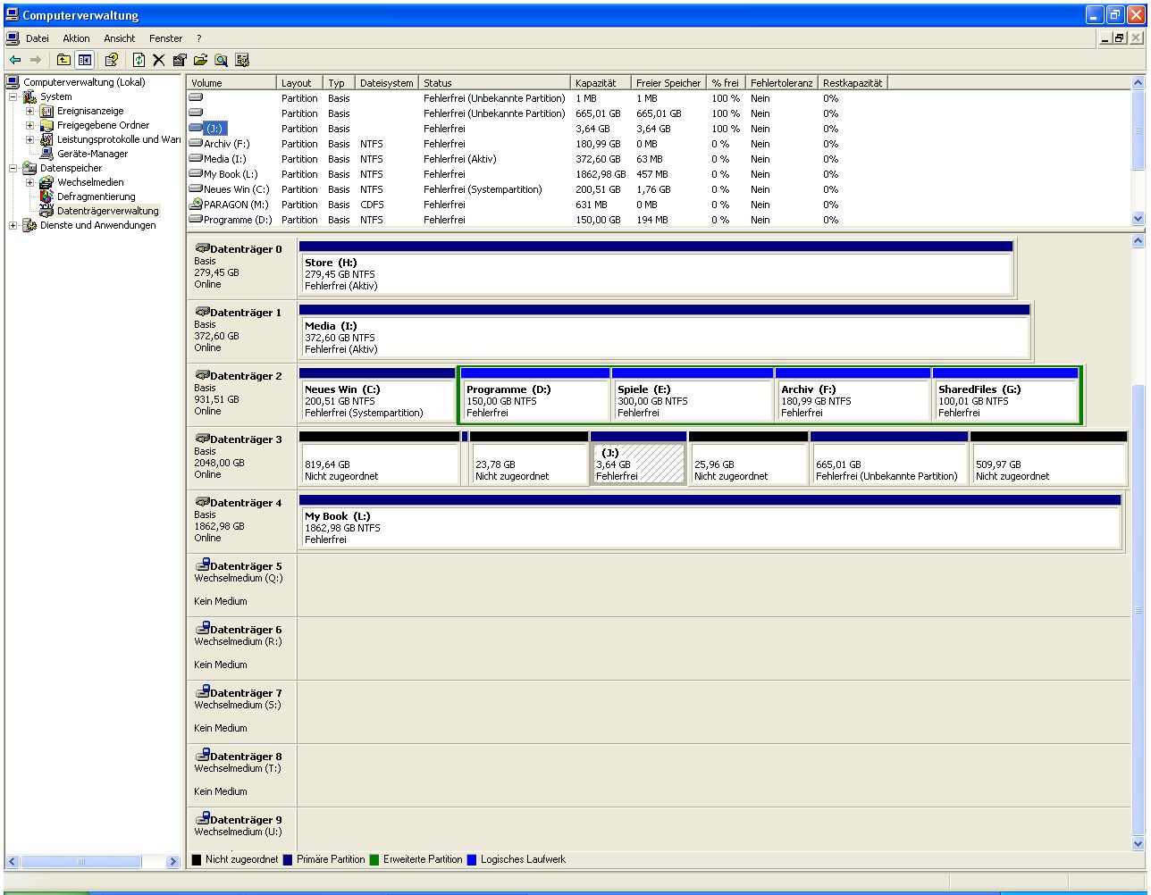 Eine 300 GB Platte wird mir in diesem Fenster einmal korrekt angezeigt, ein anderes mal als 3.159.040 TB !!!!