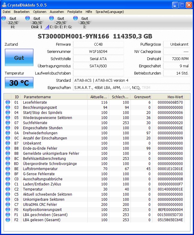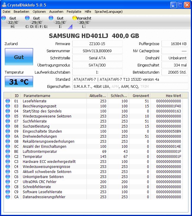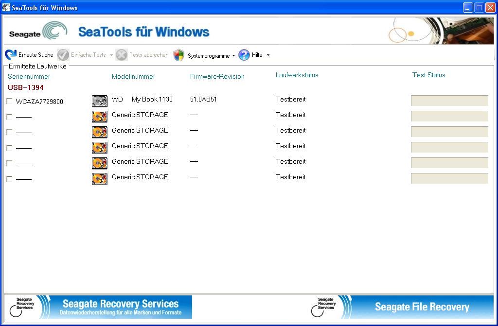 Die restlichen 3 HDDs sind von Samsung und sollten eigentlich von Seagate Tools unterstützt werden.