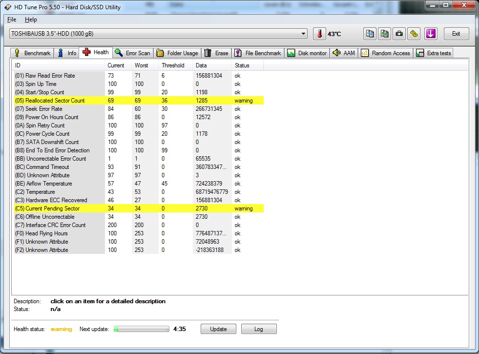 Laut SMART-Test der Platte sind keine defekten Sektoren, sondern nur Neu-Zugeordnete Sektoren sowie schwebende Sektoren vorhanden.