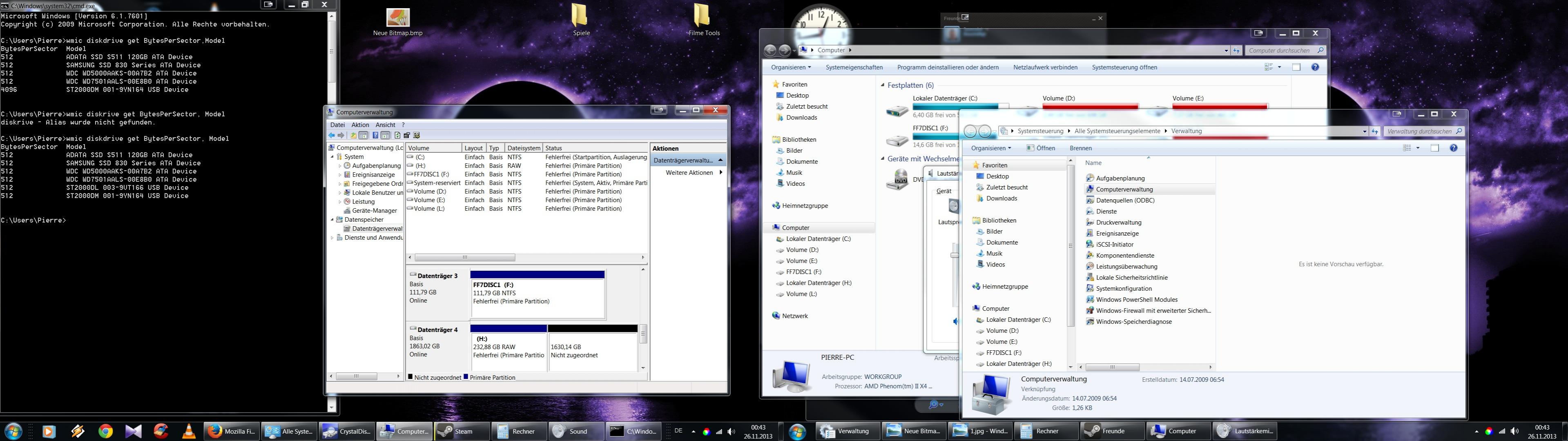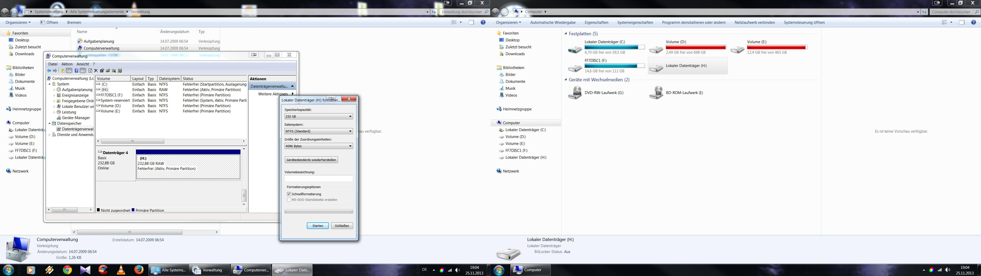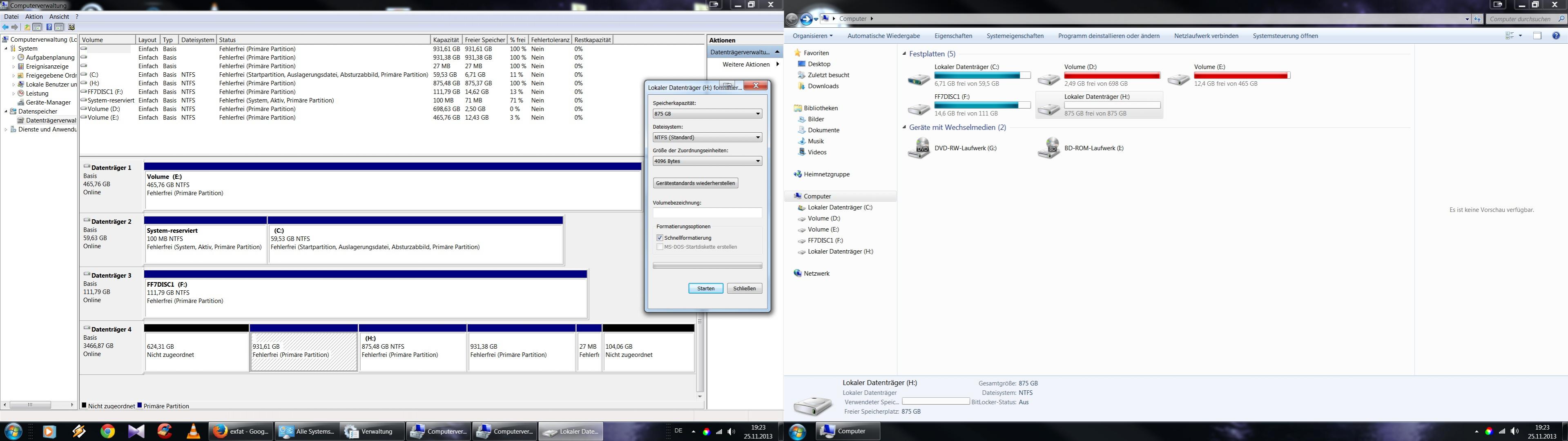 Was mir noch ein wenig Kopfschmerzen bereitet ist, das die Platte sich manchmal nur mit 200 GB und einmal mit 800 GB Formatieren lässt, und die Partitionen in der Datenträgerverwaltung quer durcheinander gewürfelt sind.