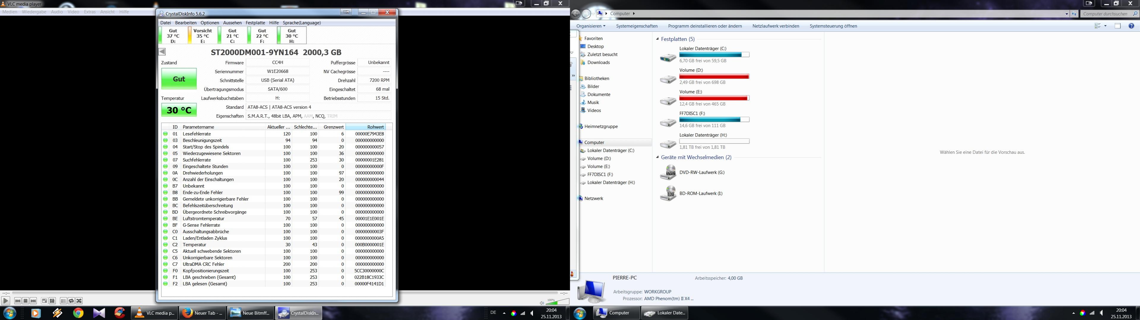 Verbaut ist eine ST2000DM001-9YN164 mit der Firmware CC4B welche ich mitlerweile schon auf CC4H gepatcht habe.
