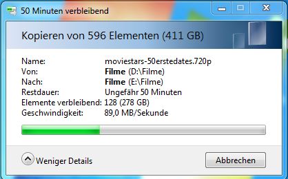Habe mittlerweile zwei dieser Platten. Beiden sind immernoch in Ordnung und ich bin mit der Leistung durchaus zufrieden. Im Anhang habe ich ein Beispiel für die Schreibleistung zwischen zwei halb gefüllten ST31500341AS.
