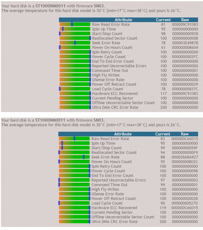 ich habe 2 1TB Seagate Constellation Platten im Raid0 laufen, die knapp 4,5 Jahre auf dem Buckel haben.