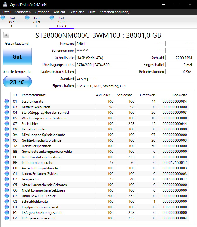 Ich werd einfach alles hier reinschreiben, damit es nicht zuviel off topic ist. Die Platte muss wohl mind. noch bis Samstag weiterlaufen, dann folgen noch ein paar kleine Einblicke. Ich kann bisher sagen, soweit unauffällig. Die Vibrationen sind erträglich, allerdings schreibt die Platte natürlich sequenziell im Moment, da sind kaum Lesekopfbewegungen zu erwarten.