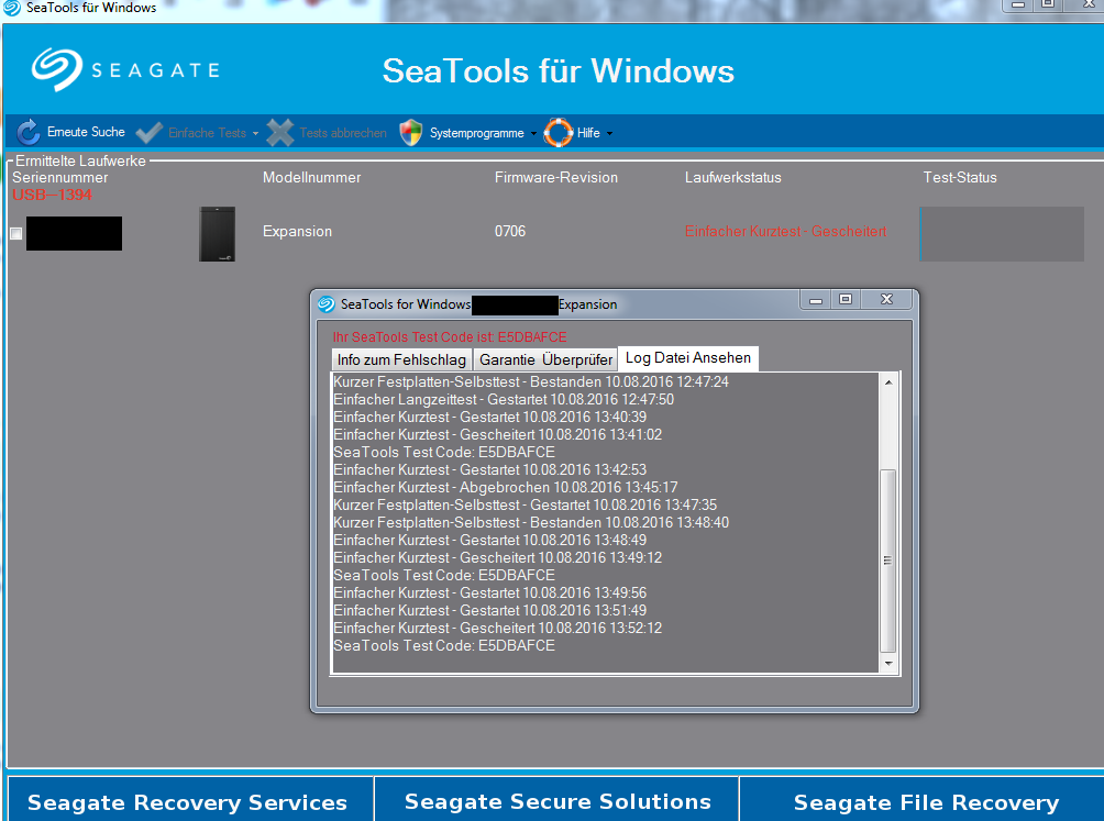 - Das hauseigene SeaTools Diagnose-Tool runtergeladen und ...