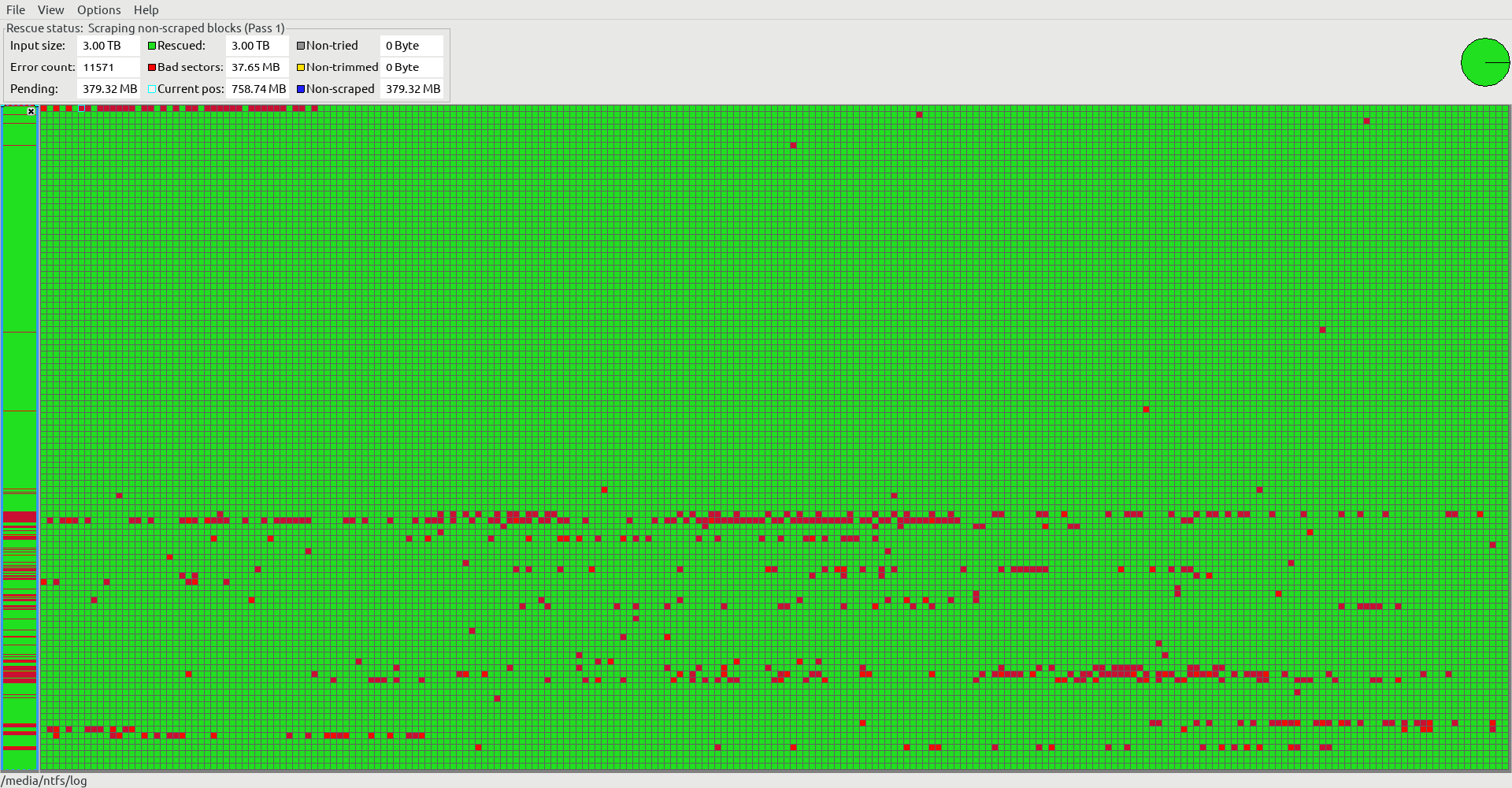 Ist ddrescue schon bei den defekten Sektoren angekommen, oder ist die Lesegeschwindigkeit dauerhaft so gering? Auf welche Platte wird überhaupt gesichert?