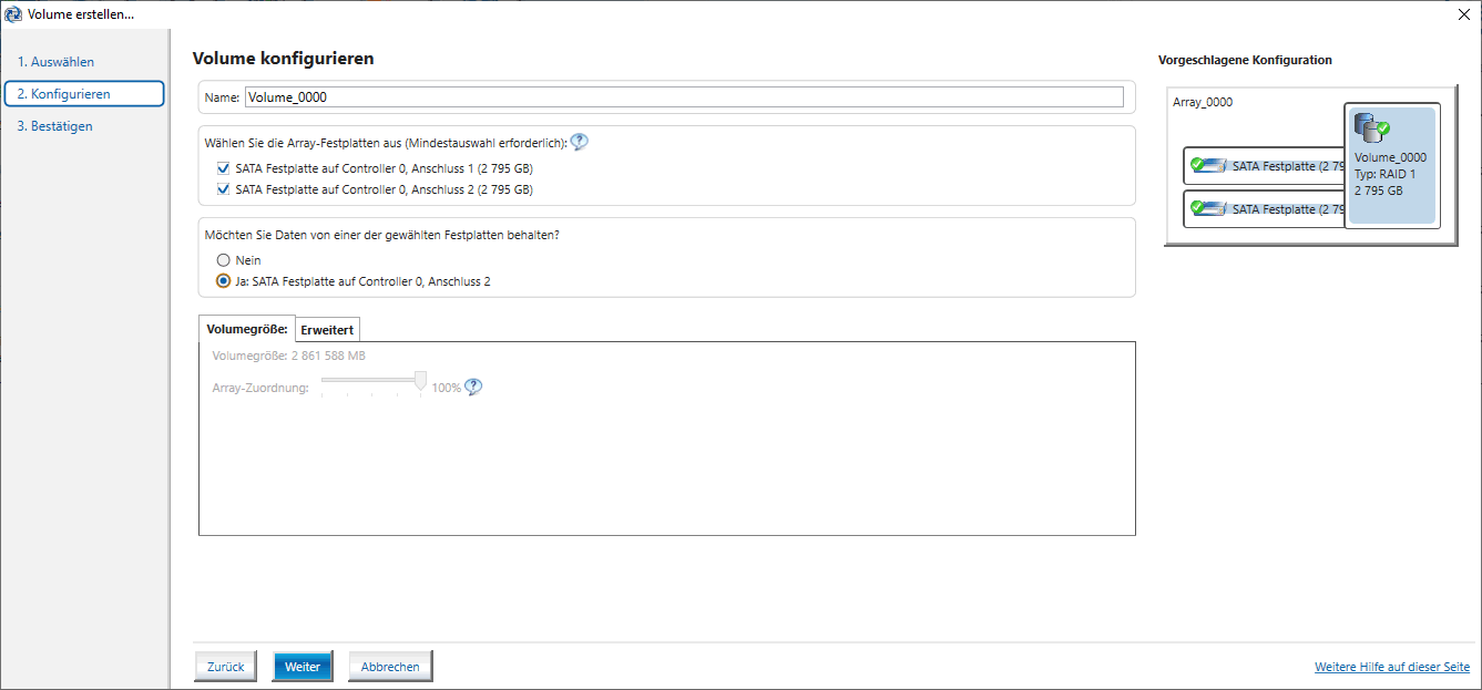 Ich denke, ich kopiere nun alle Daten auf die kleinere Festplatte und baue dann mit dieser das RAID auf?
