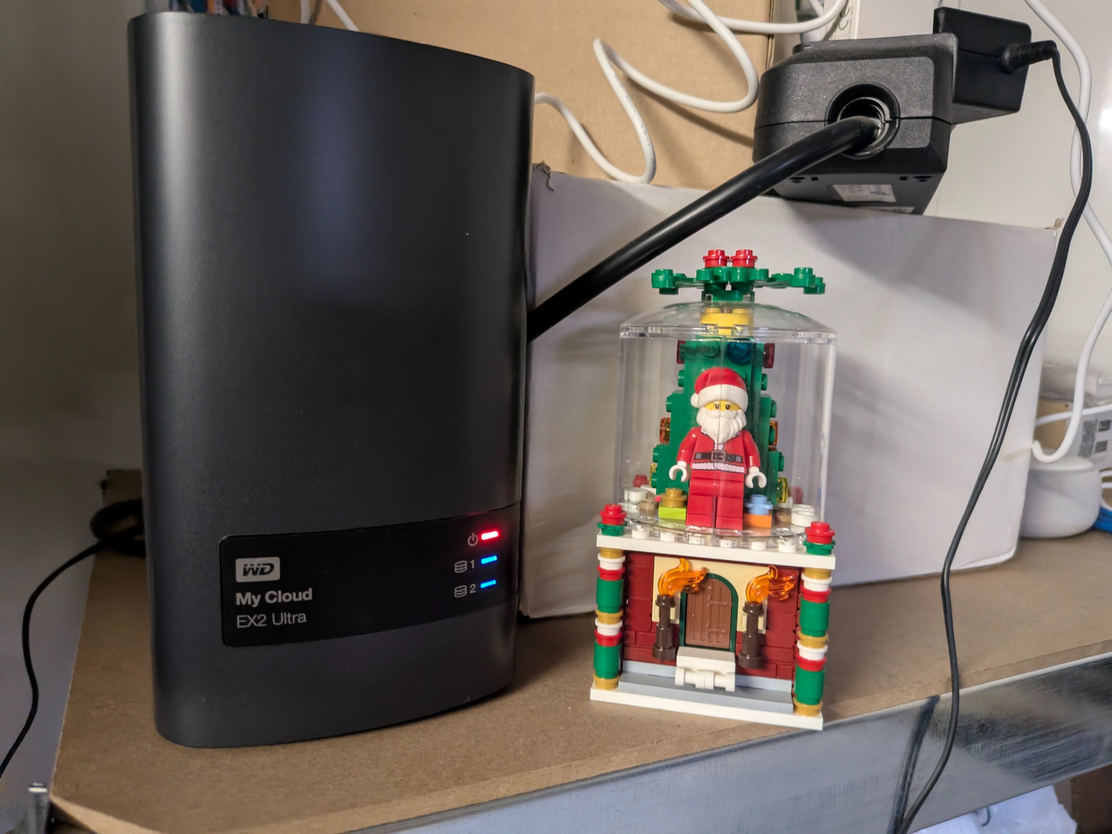 Ne im Ernst, mehr Weihnachtsdeko besitze ich einfach nicht, aber immerhin ein "Bild seines aktuellen NAS mit weihnachtlichem Accessoire" 😅
