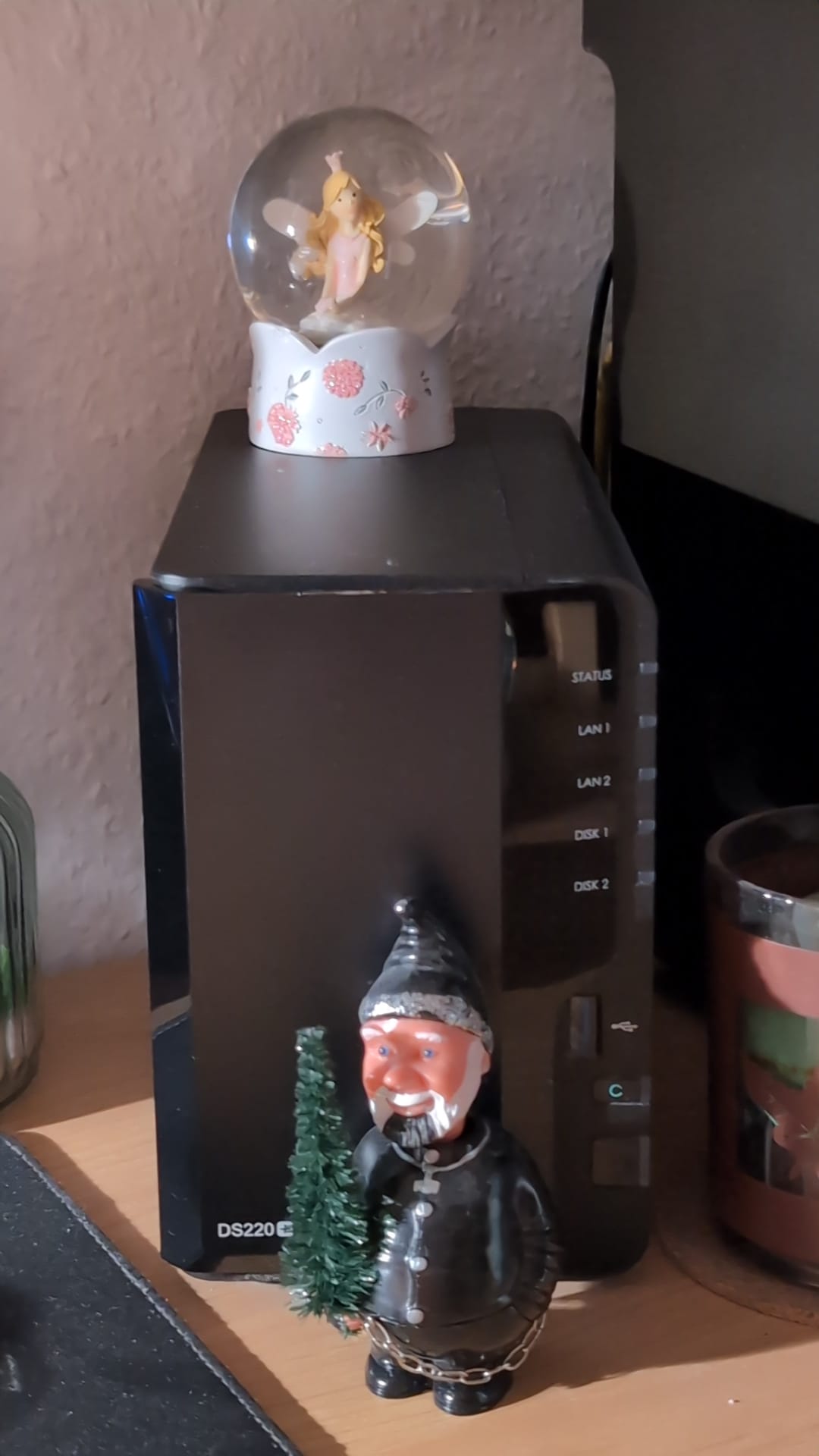 An den LEDs vom NAS erkennt man, dass noch Platz für zwei IronWolf-HDDs frei sind