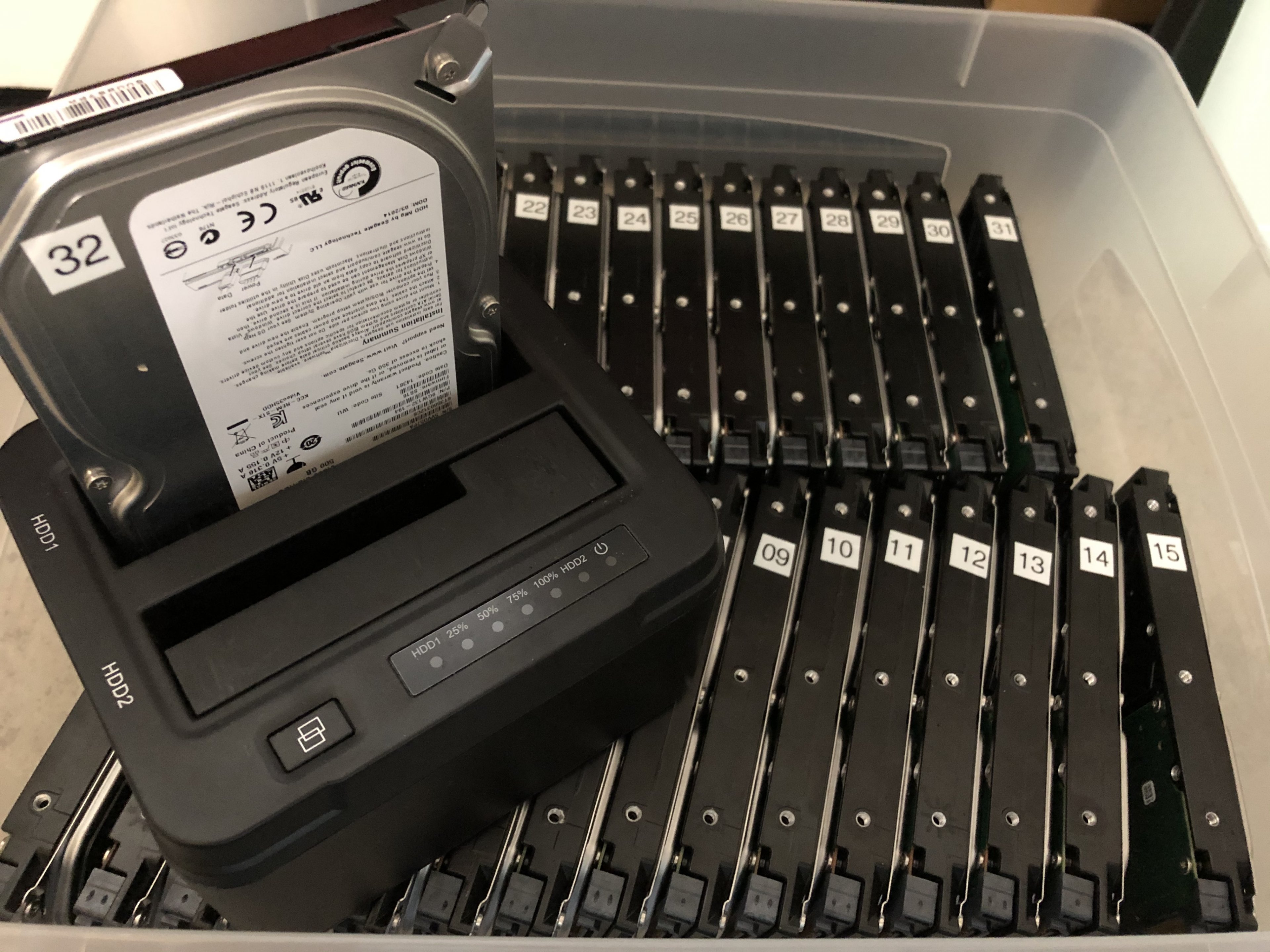 Schaut euch meine jetzige „NAS“-Lösung an. Sie besteht aus 32 alten 500GB Seagatefestplatten. Das kann kein Zufall sein!