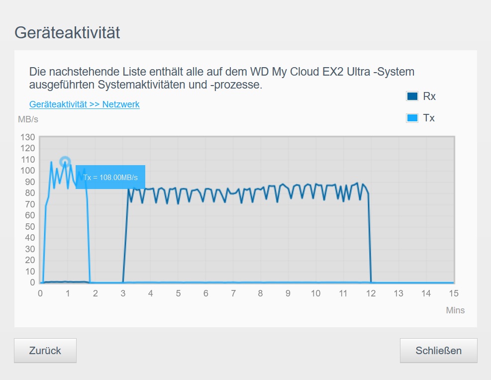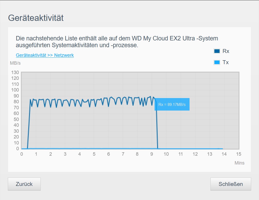 In der Datenrate komme ich mit dem aktuellen NAS auf 89,17mb/sek. schreibend bzw. 108 mb/sek lesend.