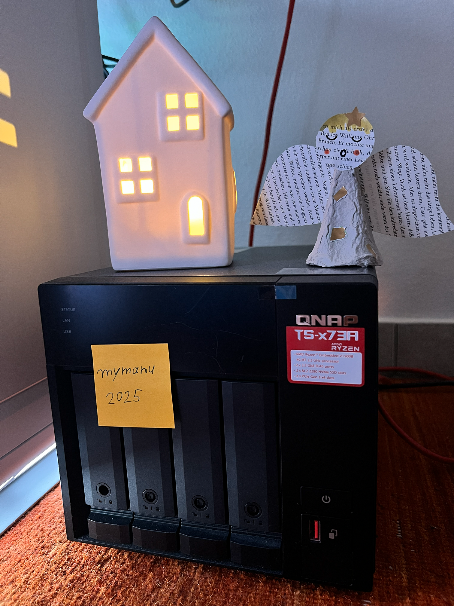 Hier mein Dreier-Gespann QNAP TS-431P sowie die Synology DS213j und DS115j (von links nach rechts).