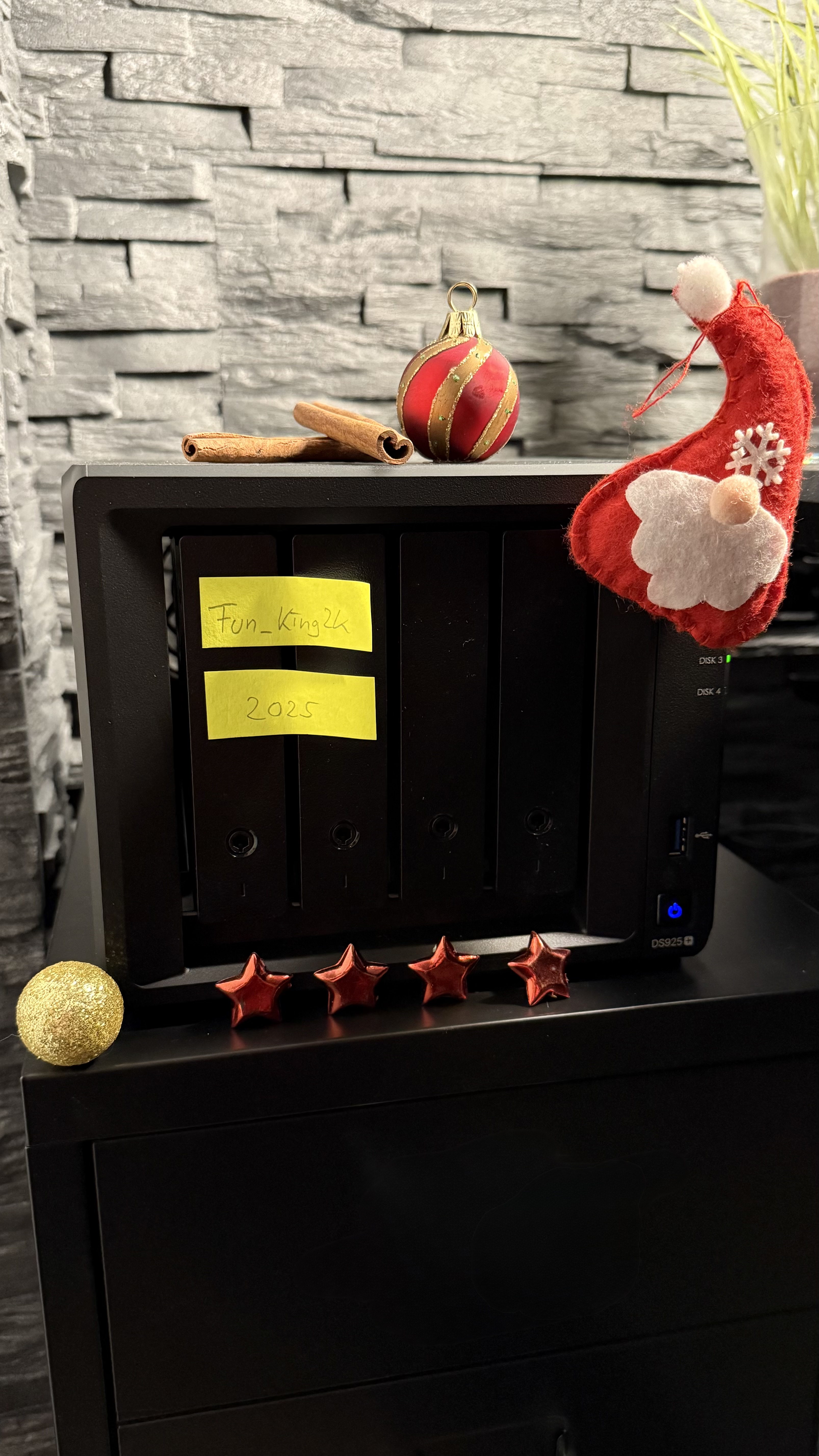 Das Arbeits-NAS hat 2x 4 TB NVMEs, das Backup-NAS hat 2x 28 TB Seagate Exos M. Ich hätte da noch Platz für zwei weitere Festplatten im Arbeits-NAS. 😏