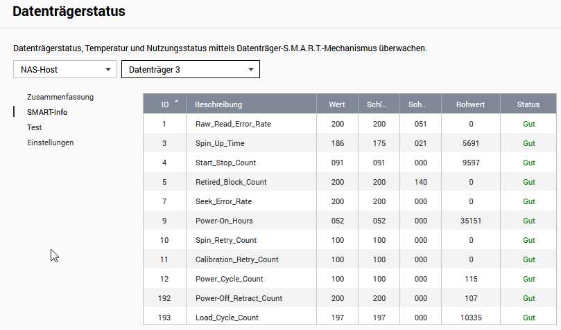 Die älteste der drei Platten stammt noch aus einem WD MyCloud 3 TB und ist ungefähr 4 Jahre alt - sooo lange wird die es also vermutlich nicht mehr machen. Update: 4,12 Jahre uptime bei der ältesten Platte