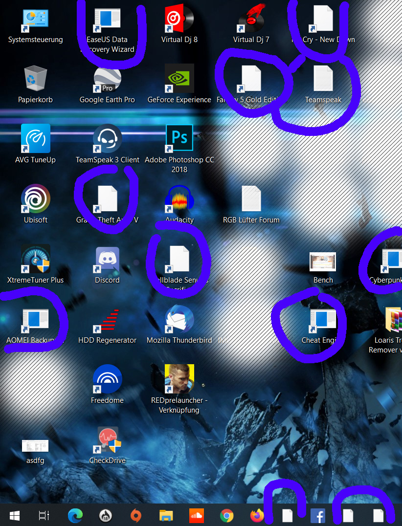 Ich hab jetzt noch ein anderes Problem. Habe gestern "eigendlich" mein PC gereinigt TuneUP, Windows fehlerhafte Sektoren repariert und er erkennt die ganzen Spiele etc. wo auf der kaputten F waren immer noch (Platte ist ausgesteckt), hab gestern über die Systemsteuerung alles deinstalliert was es noch erkannt hat, warum auch immer...-heute jedoch sind einige Desktop Icons wieder da, wie bekomme ich die vom PC runter, da die Karte ja ausgesteckt ist? (Siehe Bilder, Systemsteuerung und Desktop Screenshot)