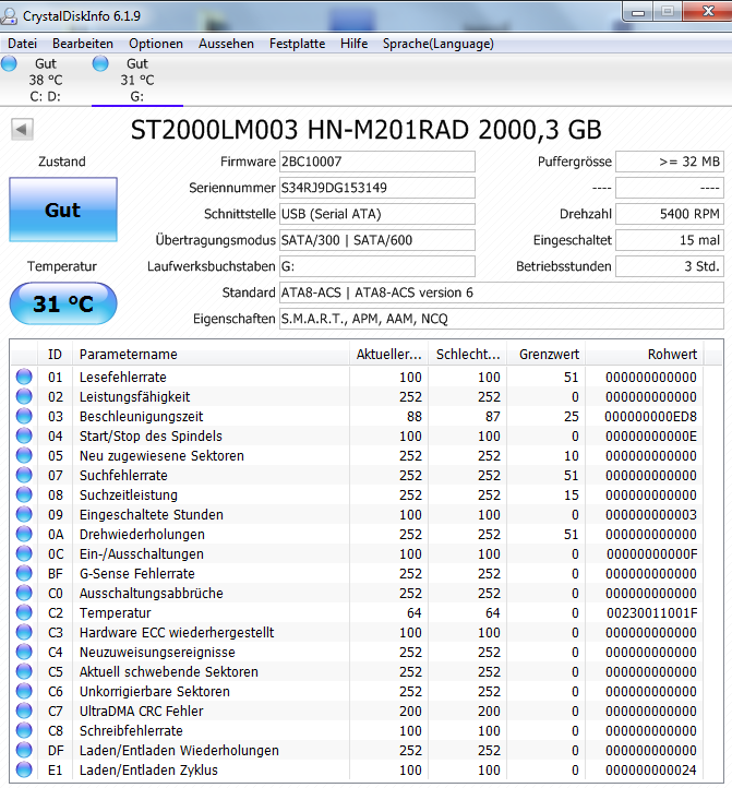 SMART info war allerdings nicht vorhanden via USB (2.0),weiterhin seht alles Gut aus.