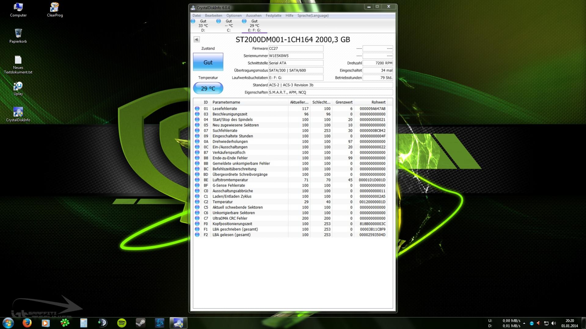 Ich habe also Insgesammt 3 Festplatten, eine SSD mit Betriebssystem, eine 1TB und die angesprochene 2TB Seagate.