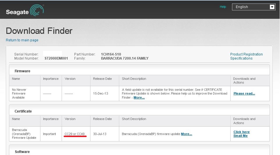 Bzgl. der Verwirrung von CC29 und CC49, führt man dieses weiter vorne mir verlinkte DriveDetect aus, sieht man folgendes Ergebnis auf der Seagate-Webseite