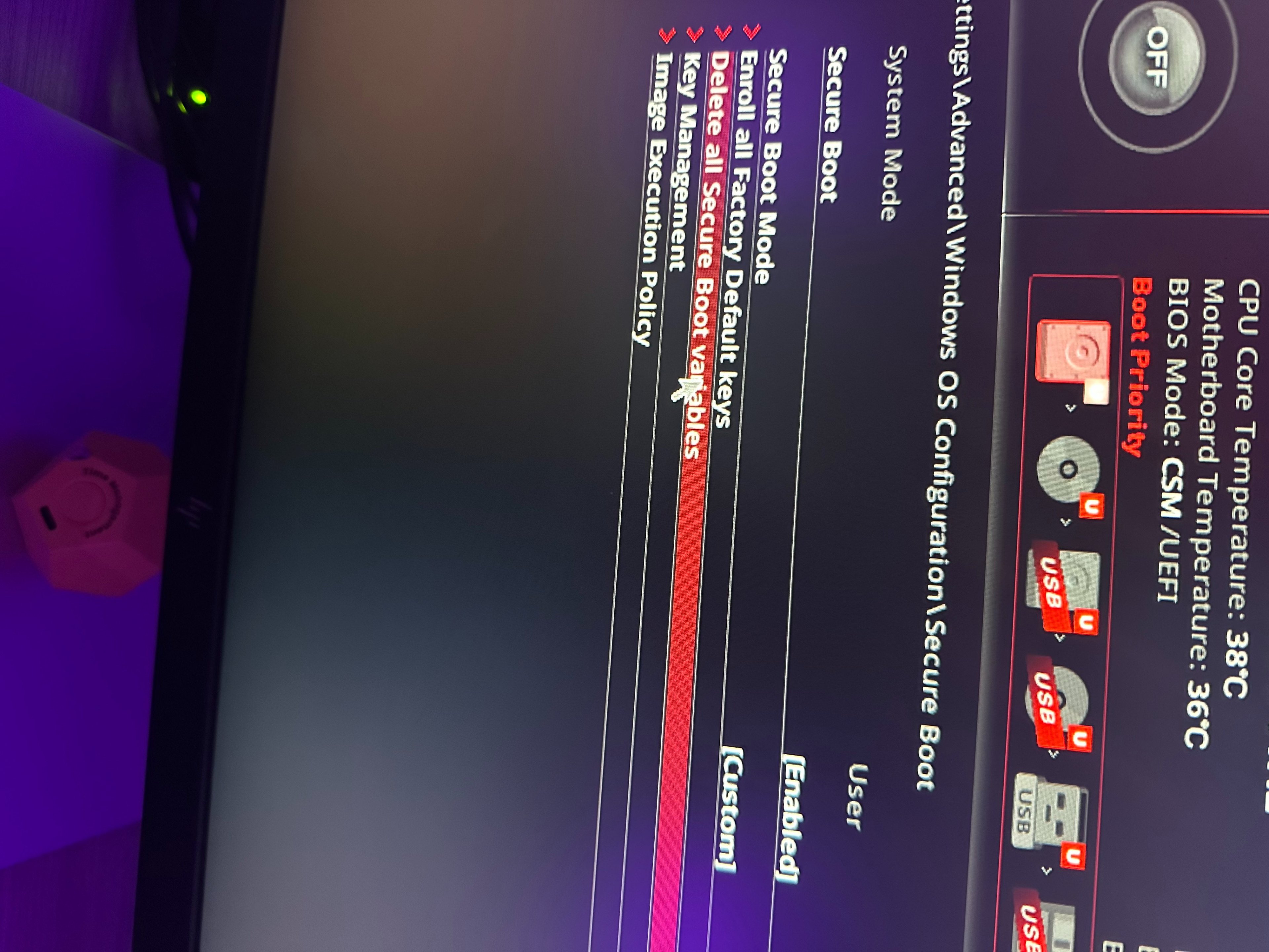 Ich möchte Battlefield 6 zocken. Hierfür muss ich den Secureboot im BIOS aktivieren. Dieser ist bei mir lt. "msinfo32" deaktiviert: