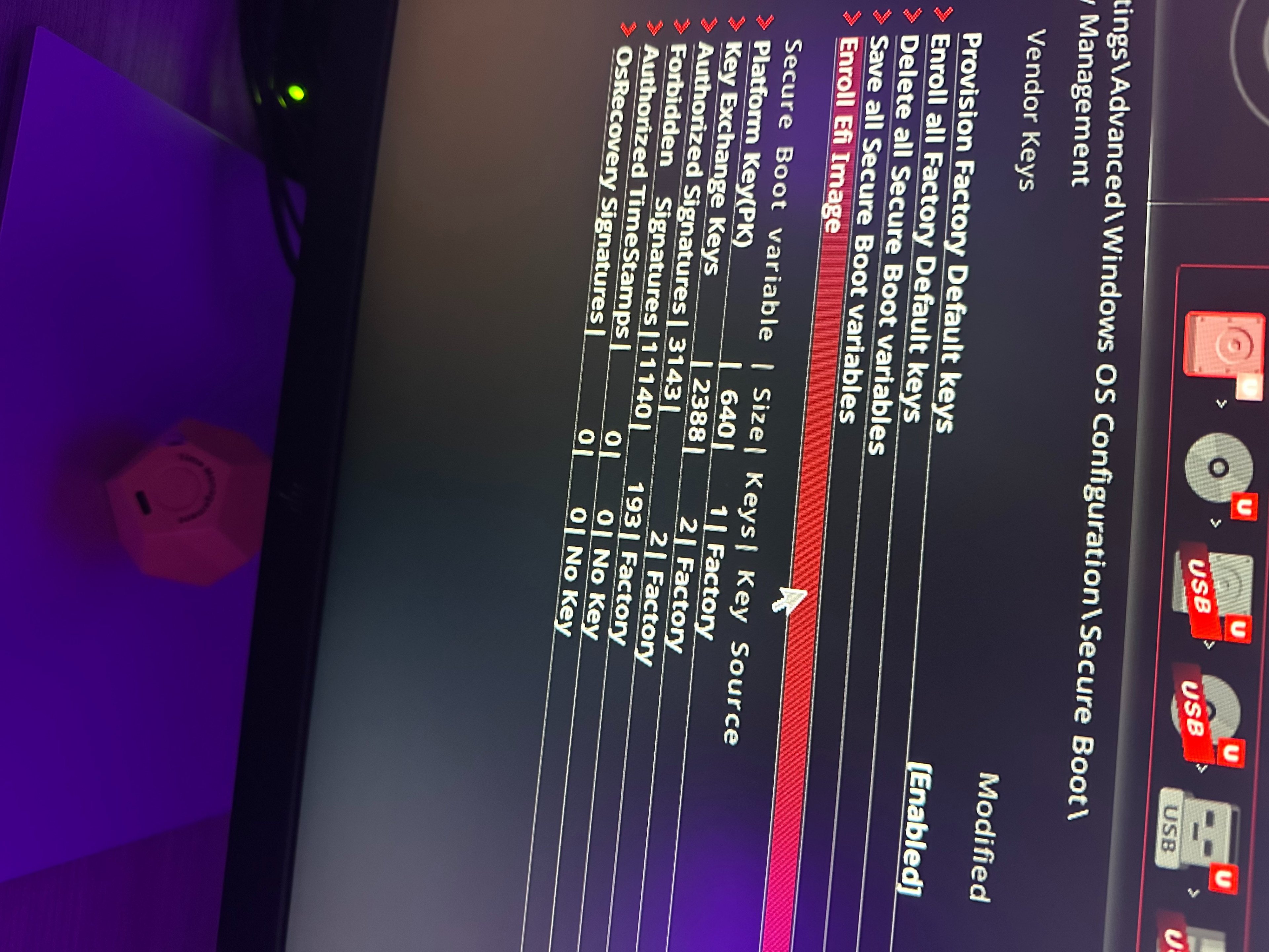 Komischerweise ist lt. Ansicht im BIOS der SecureBoot aktiviert, aber über "msinfo32" weiterhin deaktiviert.